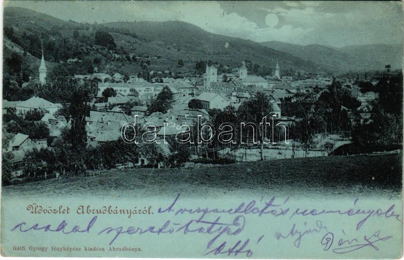 1901 Abrudbánya, Abrud; este. Gálfi György fényképész kiadása / night ... https://www.darabanth.com/hu/456-Gyorsarveres/456.0/Kepeslapok/Erdely~1500005/1901-Abrudbanya-Abrud-este-Galfi-Gyorgy-fenykepesz-kiadasa-night-EK~II3049163