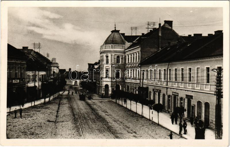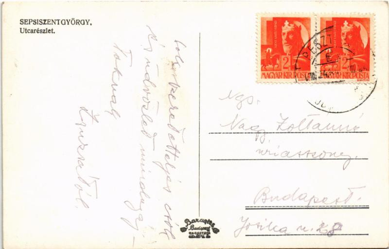 Sepsiszentgyörgy, Sfantu Gheorghe; utca, cukrászda, EMSZO (Egyházközségi Munkásszakosztályok, sok zsidó tagja volt) székháza / street, confectionery shop, headquarters of a Christian social worker movement organization