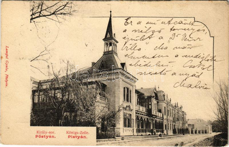 1903 Pöstyén, Pistyan, Piestany; Király sor, villa. Lampl Gyula kiadás... https://www.darabanth.com/hu/456-Gyorsarveres/456.0/Kepeslapok/Felvidek~1500006/1903-Postyen-Pistyan-Piestany-Kiraly-sor-villa-Lampl-Gyula-kiadasa-Konigs-Zeile-street~II3047442