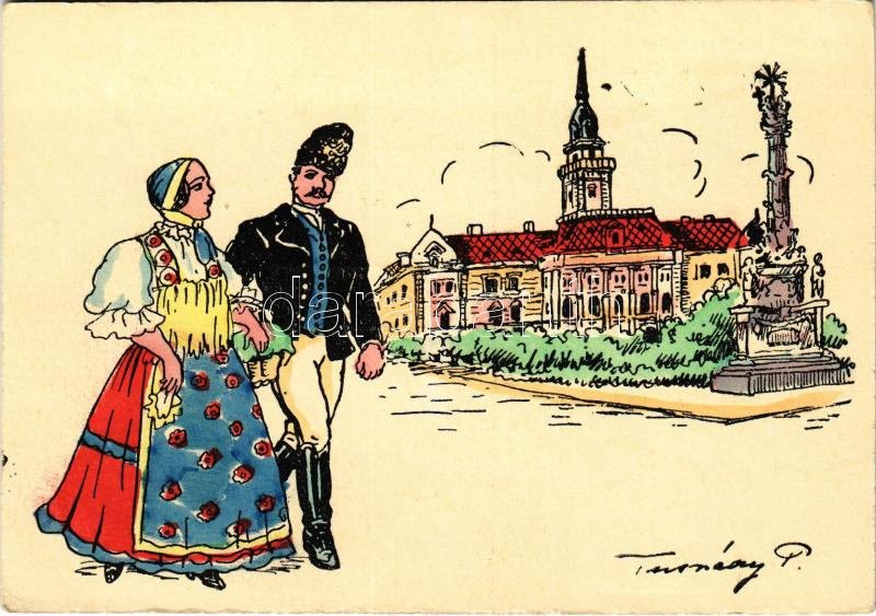 Újvidék, Novi Sad; Városháza. A vidék népviselete. Kiadja a Délvidéki Egyetemi és Főiskolai Hallgatók Egyesülete / Hungarian irredenta propaganda, town hall, folklore s: Tusnády (EK)