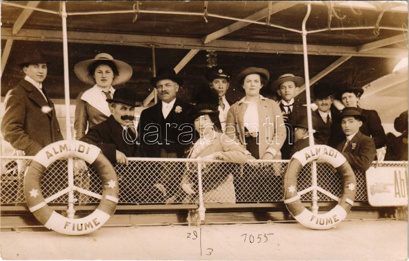Leírás: S.M. Dampfer ALMÁDI, hajókirándulás (később az Osztrák-magyar haditengerészet kommunikációs hajója) / boat trip. E. Jelussich Abbazia-Fiume-Lovrana-Cirkvenica photo (later K.u.k. Kriegsmarine communication vessel)