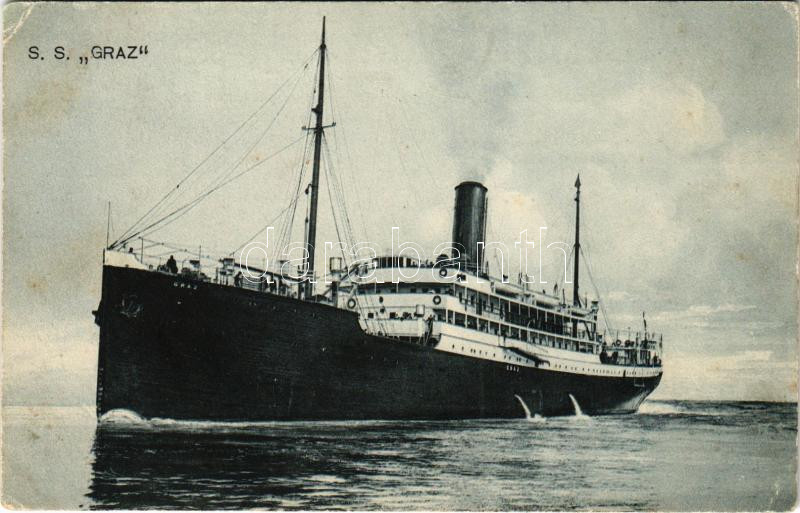 S.M. Dampfer GRAZ (later K.u.k. Kriegsmarine) (Rb) https://www.darabanth.com/hu/456-Gyorsarveres/456.0/Kepeslapok/Hajo~1500061/SM-Dampfer-GRAZ-later-Kuk-Kriegsmarine-Rb~II3041783