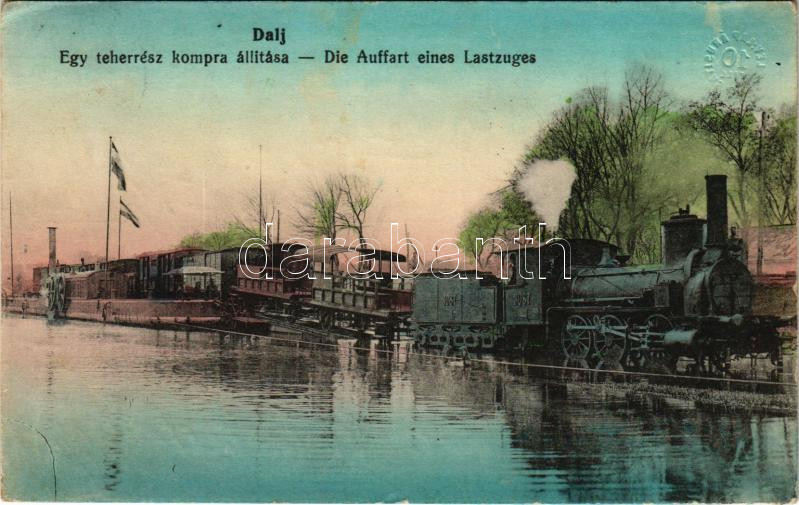 1914 Dálya, Dalja, Dalj (Erdőd, Erdut); Egy teherrész kompra állítása,... https://www.darabanth.com/hu/456-Gyorsarveres/456.0/Kepeslapok/Horvatorszag~1500008/1914-Dalya-Dalja-Dalj-Erdod-Erdut-Egy-teherresz-kompra-allitasa-gozmozdony-vonat~II3046492