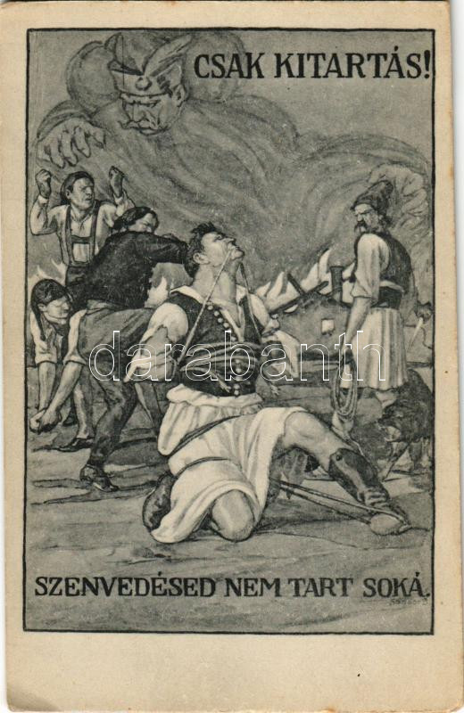 Csak kitartás! Szenvedésed nem tart soká! Magyarország Területi Épségének Védelmi Ligájának kiadása / Hungarian irredenta art postcard s: Sándor B. (EK)