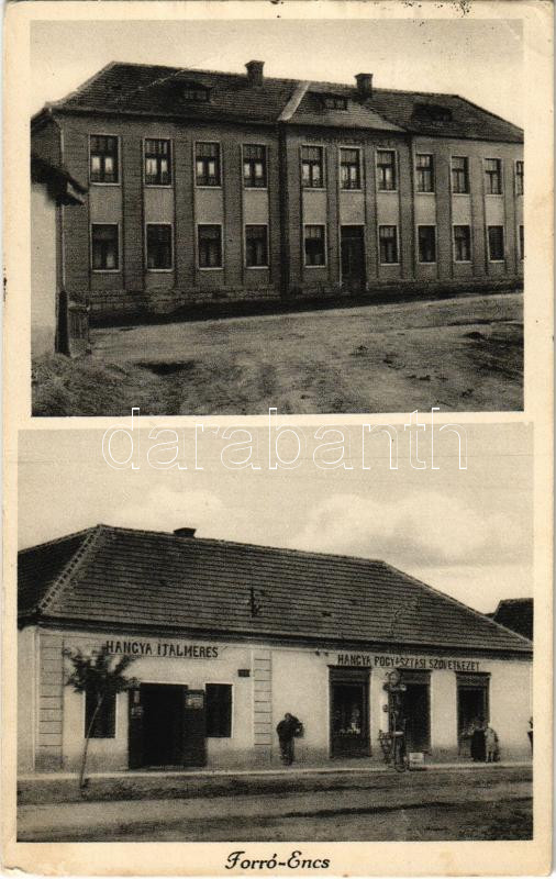 Leírás: 1936 Forró (Encs), Római katolikus elemi iskola, Hangya fogyasztási szövetkezet üzlete és italmérése (EB)