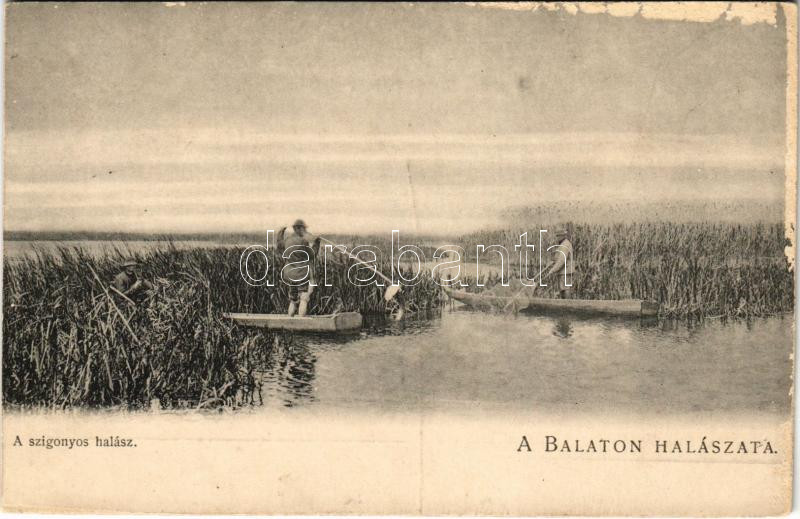 Leírás: Balaton, Halászat, szigonyos halász (felszíni sérülés / surface damage)