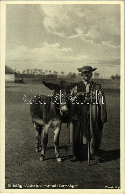 Hortobágy, Juhász a szamarával, magyar folklór. Photo Erdélyi https://www.darabanth.com/hu/456-Gyorsarveres/456.0/Kepeslapok/Magyarorszag~1500004/Hortobagy-Juhasz-a-szamaraval-magyar-folklor-Photo-Erdelyi~II3047929