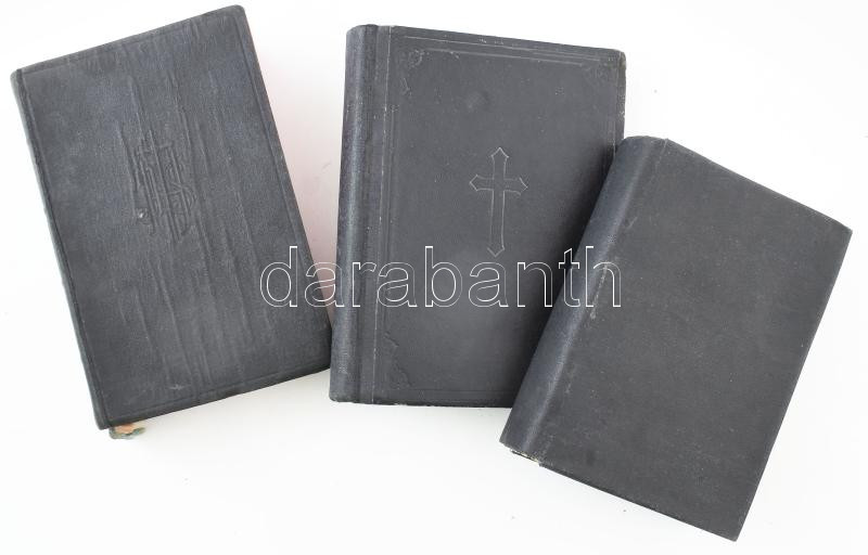 Vegyes egyházi könyvtétel, 3 db: Magyar-latin misszále az év minden napjára. A római misekönyv szerint fordította, bevezetéssel és magyarázatokkal ellátta Szunyogh Xav. Ferenc. Bp., 1933, Szent István-Társulat, (Stephaneum-ny.), 1488 p. Magyar és latin nyelven. Kiadói egészvászon-kötés, kopott borítóval, foltos lapokkal.; Újszövetségi szentírás. Ford.: Káldi György. Bp.,(1928),Szent István-Társulat. Kiadói kopott egészvászon-kötés, fekete papírborítóban. Egyházi imák és énekek. Iskolai és templomi használatra összeállították: Balogh István és Kapossy Gyula. Szeged, 1927, Szeged Uj Nemzedék. Tizedik kiadás. Kiadó kopott félvászon-kötés.;