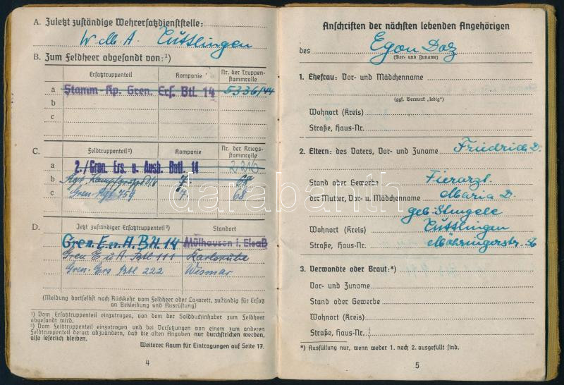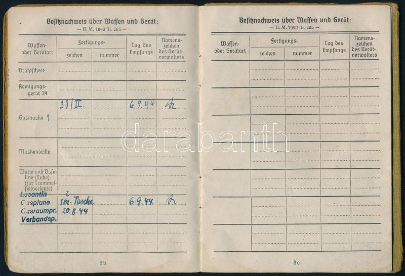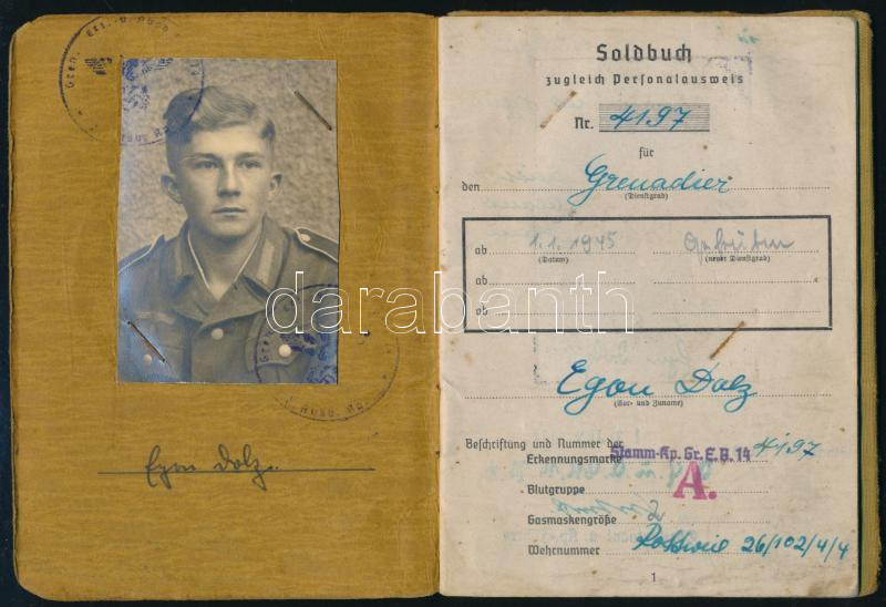 1944 Német zsoldkönyv gránátos részére / Soldbuch - German mililtary p... https://www.darabanth.com/hu/456-Gyorsarveres/456.0/Mutargy-papirregiseg-egyeb/Militaria~1000041/1944-Nemet-zsoldkonyv-granatos-reszere-Soldbuch-German-mililtary-payment-booklet~II3049117