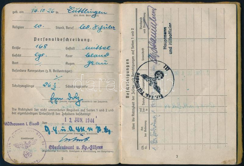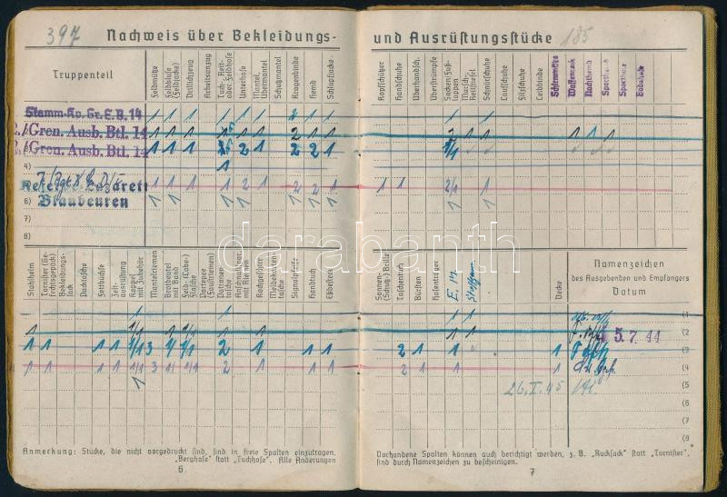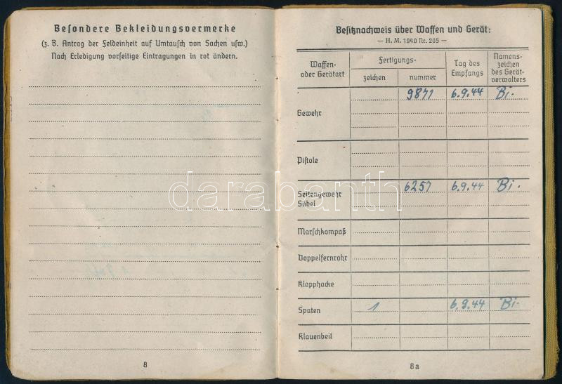 Leírás: 1944 Német zsoldkönyv gránátos részére / Soldbuch - German mililtary payment booklet