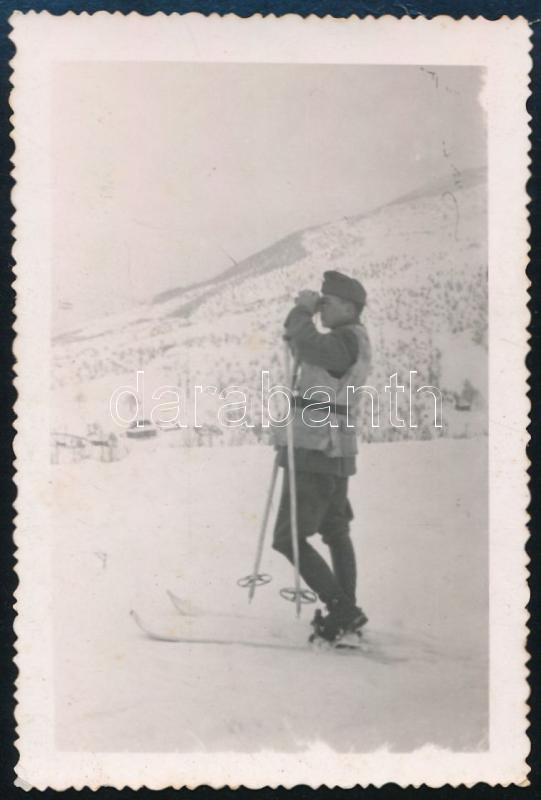 cca 1942 Magyar katona sítalpon, távcsővel, fekete-fehér fotó, 6×9 cm https://www.darabanth.com/hu/456-Gyorsarveres/456.0/Mutargy-papirregiseg-egyeb/Militaria~1000041/cca-1942-Magyar-katona-sitalpon-tavcsovel-fekete-feher-foto-6x9-cm~II3044411