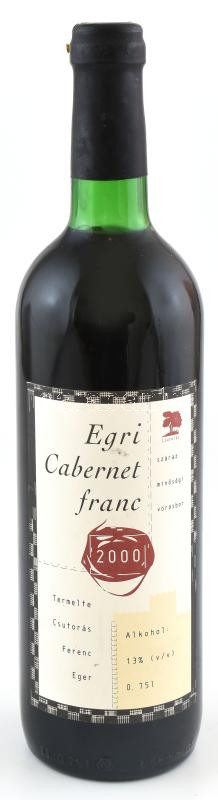 Leírás: 2000 Csutorás Egri Cabernet Franc, bontatlan palack száraz vörösbor, 13 % pincében szakszerűen tárolt, 0,75 l.