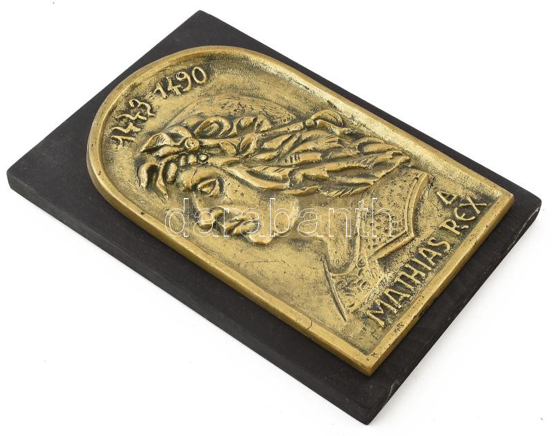 1991, Baróthi Ádám (1945- ): Hunyadi Mátyás.Bronz fali plakett fa tala... https://www.darabanth.com/hu/456-Gyorsarveres/456.0/Mutargy-papirregiseg-egyeb/Szobrok-kisplasztikak-plakettek~500010/1991-Barothi-Adam-1945-Hunyadi-MatyasBronz-fali-plakett-fa-talapzaton-jelzett-hatoldalan~II3046016