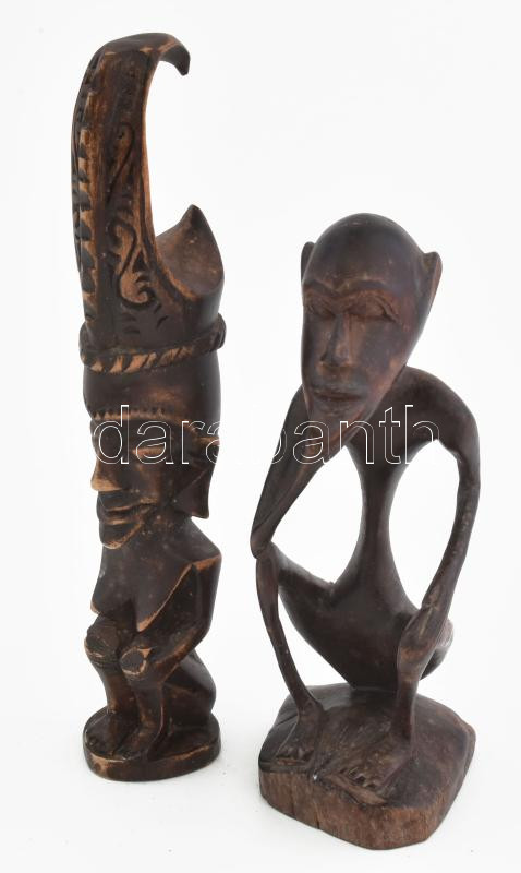 Leírás: 2 darab afrikai faragott fa szobor, minimális kopással, m: 16-20 cm