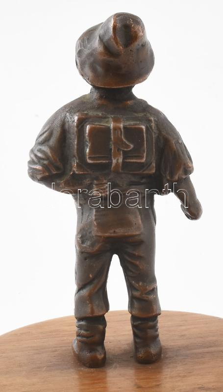 Leírás: Iskolás fiú, bronz szobor fa alapon 15 cm