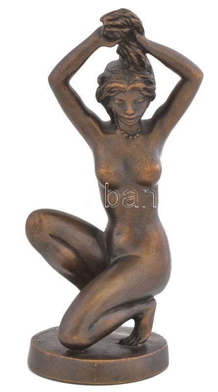 Leírás: Rácz Edit (1936- ): Akt. Bronzírozott műanyag, hibátlan, jelzett, m: 22cm