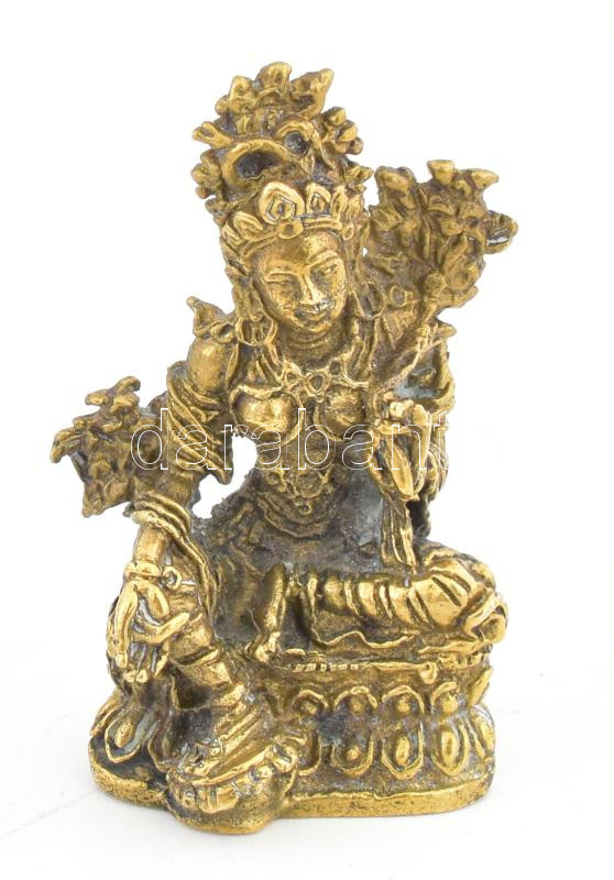 Leírás: Zöld Tara miniatűr bronz szobor, aprólékos kidolgozással, m: 3,8 cm