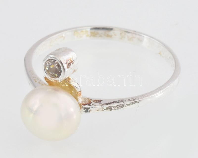 Leírás: Ezüst(Ag) gyűrű tenyésztett gyönggyel, jelzett, méret: 58, bruttó: