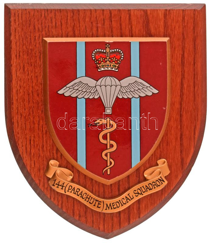 Nagy-Britannia DN "144. Ejtőernyős mentős alakulat" festett fa plakett hátoldalán akasztóval (178x154mm) T:AU