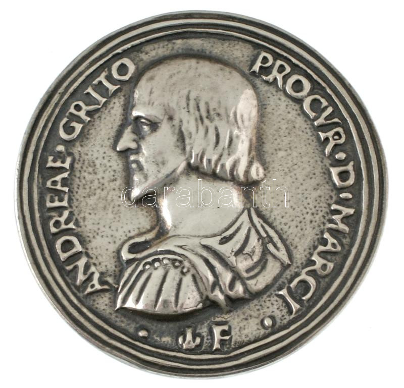 Italy ND "OPT(ime) DE PATRIA MERITO - GRAT[ia] CIV[ium] / ANDREAE GRITO PROCVR[atori] D[ivi] MARCI IOF" double sided, cast, modern Ag medallion based on the 16th century bronze medal, hallmarked and numbered on the edge, in "Hotel Gritti Palace" case (39,75g/0.925/41mm) C:AU