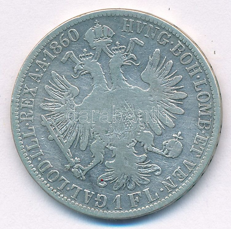 Leírás: Ausztria 1860A 1Fl Ag "Ferenc József" T:F Austria 1860A 1 Florin Ag "Franz Joseph" C:F Krause KM#2219