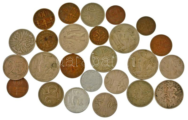 Leírás: Csehszlovákia 1921-1953. 26db-os érmetétel, közte 1933. 25h Cu-Ni (2x) T:vegyes