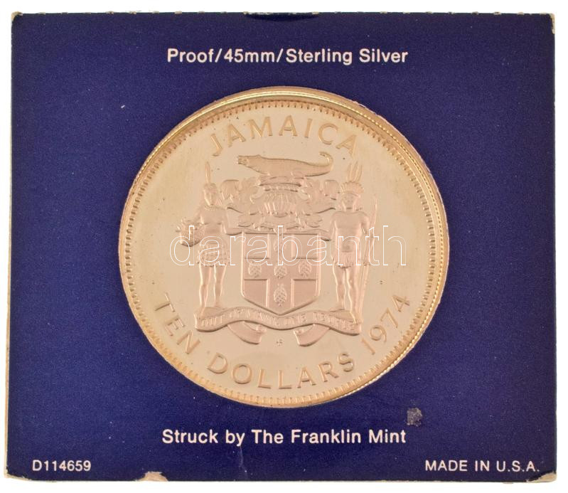 Jamaica 1974. 10D Ag "Sir Henry Morgan" eredeti dísztokban, tanúsítvánnyal T:PP patina