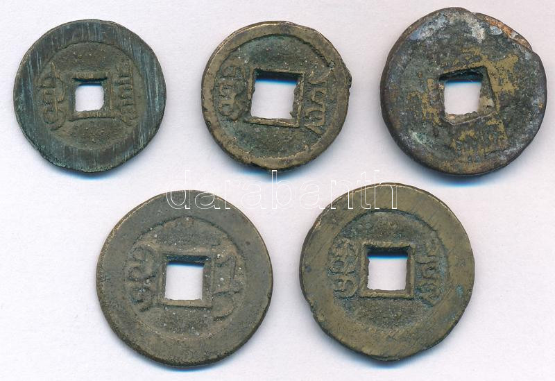 Leírás: Kínai Császárság ~19. század Cu cash (5db) T:F Chinese Empire ~19th century Cu cash (5pcs) C:F