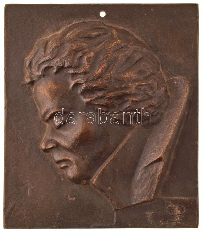Leírás: Pongrácz Szigfrid (1872-1929) (?) DN "Beethoven" egyoldalas öntött bronz plakett (145x127mm) T:AU a tetején lyuk a falra akasztáshoz