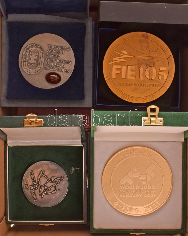 Leírás: 8db-os vegyes modern sportérem, -plakett és -jelvény tétel tokokban, közte elsősorban vívás sportággal és nemzetközi szervezetektől T:UNC,AU