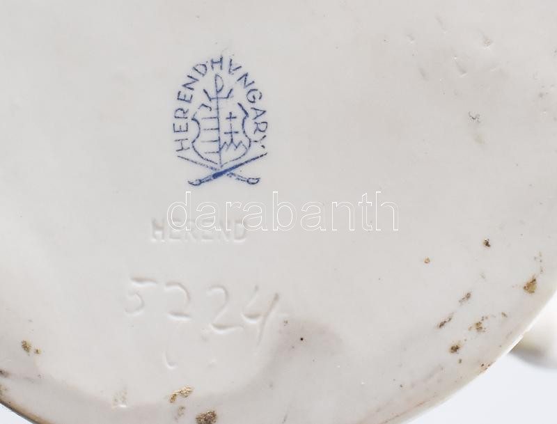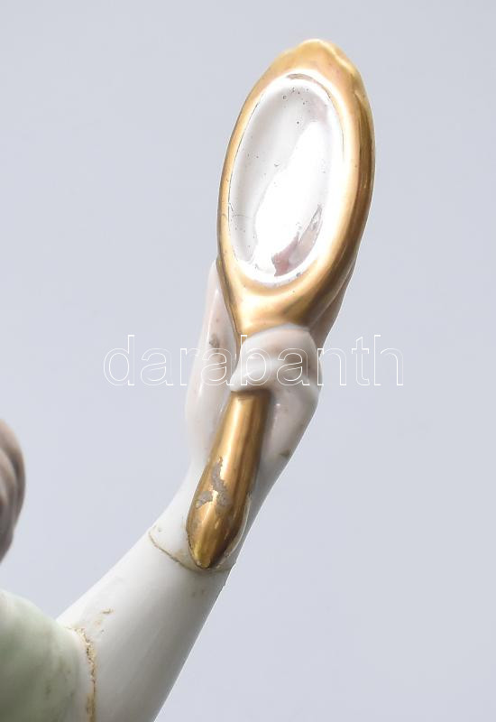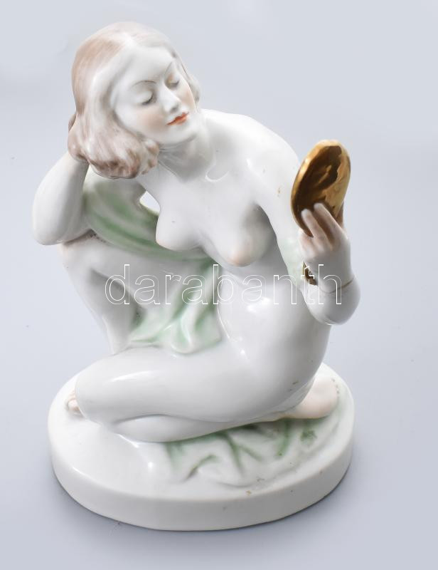 Leírás: Herendi fésülködő akt. Kézzel festett, jelzett, keze ragasztott, m: 24 cm