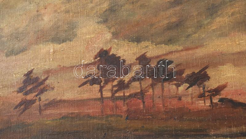 Leírás: Jelzés nélkül: Vihar előtt. Olaj, vászon, kartonra kasírozva. Apró felületi sérülésekkel (karcokkal). 31x46,5 cm