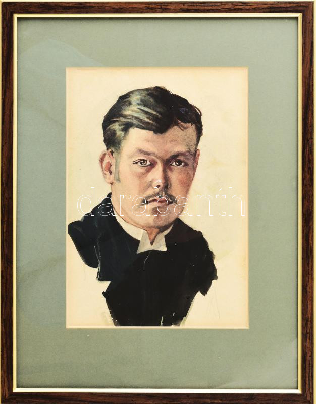 Leírás: Jelzés nélkül, XIX. sz vége: Arcképe. Akvarell, papír. Üvegezett fakeretben. 26x18 cm