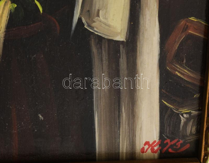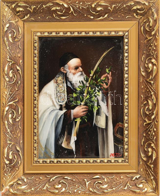 Leírás: KB jelzéssel: Rabbi. Olaj, farost, jelzett, dekoratív keretben 17x13 cm