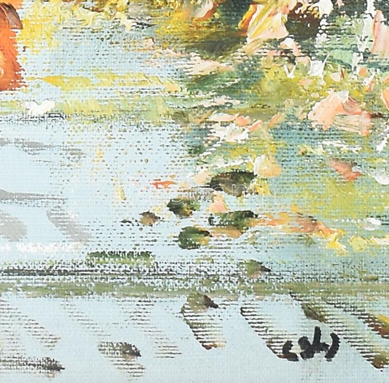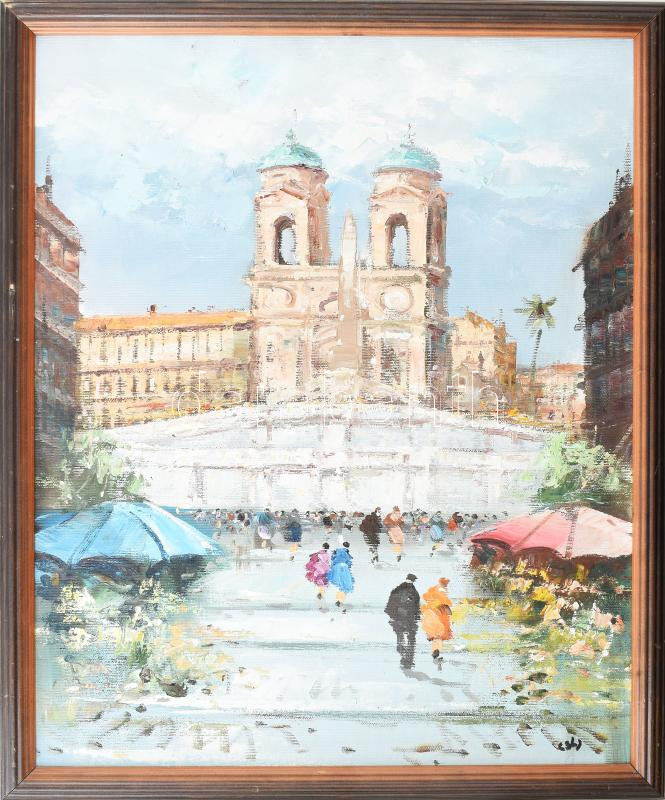 Leírás: Olvashatatlan jelzéssel: Forgatag. Olaj, farost, fakeretben. 50x40 cm