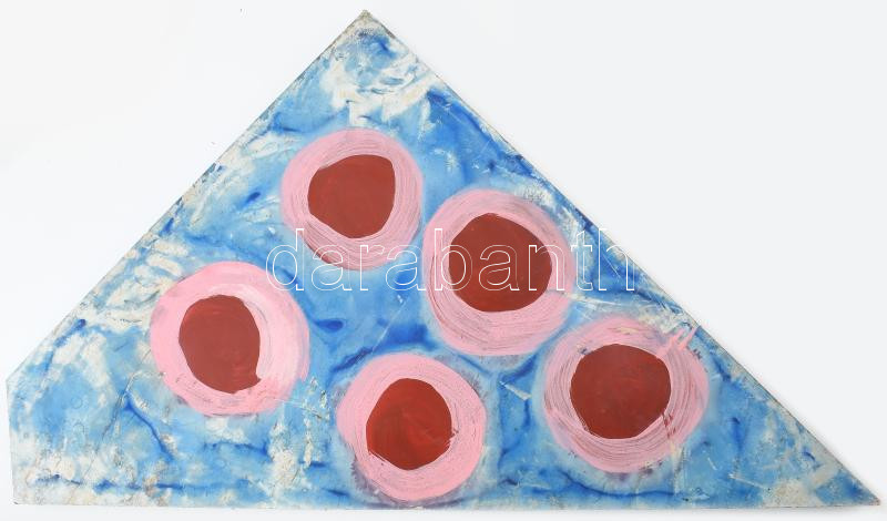 Bada Dada (Bada Tibor, 1963-2006): Öt rózsaszín-vörös kör (cím nélkül). Olaj, fa. Jelzés nélkül. Kisebb felületi sérülésekkel. Kissé foltos. 59x51x3 cm.