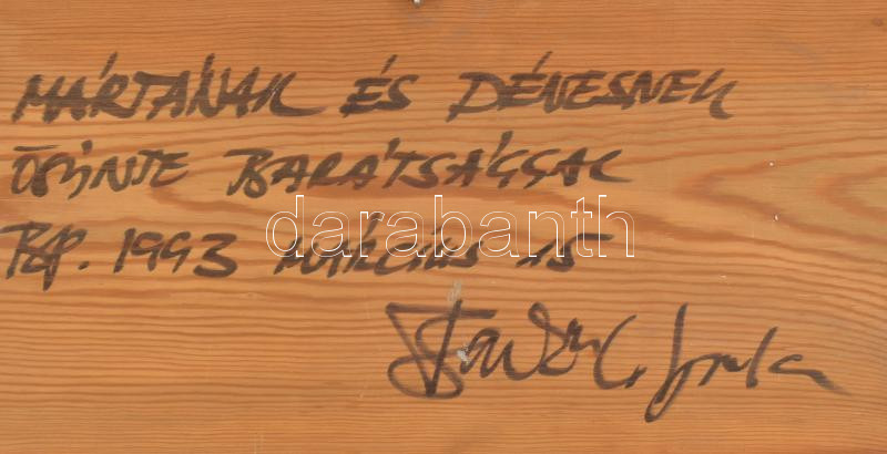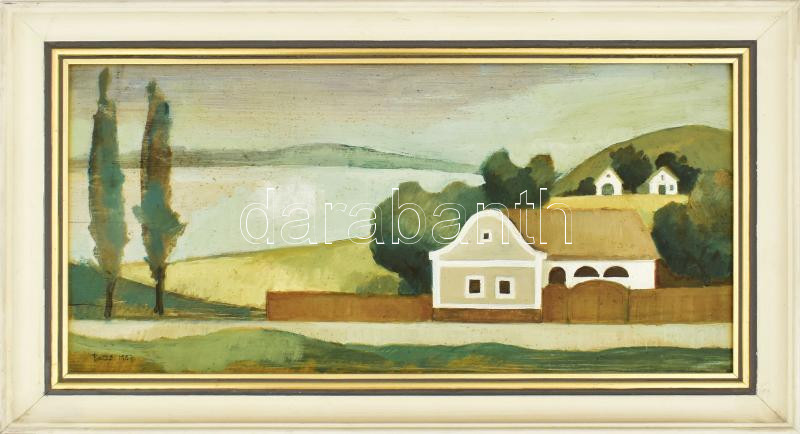 Leírás: Benkő Cs. Gyula (1939-): Aszófő Balaton mellett. Olaj, farost, jelzett, hátoldalon a művész autográf soraival. 21x42 cm