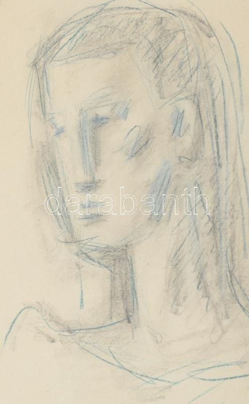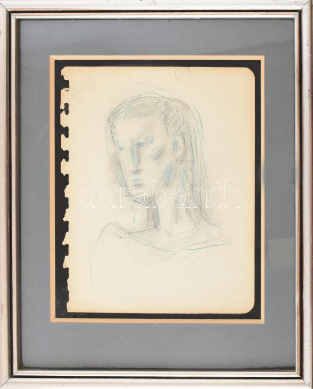 Korniss DezsÅ‘ (1908-1984): Fej, 1930 körül. Ceruza, papÃr, jelzés nélkül. Reprodukálva: Kolozsváry Marianna: Csak tiszta forrásból. Hagyomány és absztrakció Korniss DezsÅ‘ (1908-1984) művészetében. Bp., 2018, Magyar Nemzeti Galéria. 277. o. Üvegezett fakeretben. Lapszéli javÃtásokkal. 22×17 cm. / pencil on paper on paper, unsigned, reprudced in the book: Kolozsváry Marianna: Csak tiszta forrásból. Hagyomány és absztrakció Korniss DezsÅ‘ (1908-1984) művészetében. Bp., 2018, Magyar Nemzeti Galéria, page 277. With minor restorations on the edge of the paper. Framed.