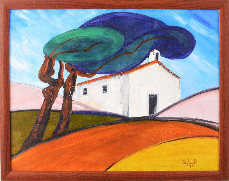 Leírás: Kovács Ilona (?-): Mediterrán hangulat. Olaj, karton, jelzett, keretben. 35x44,5 cm