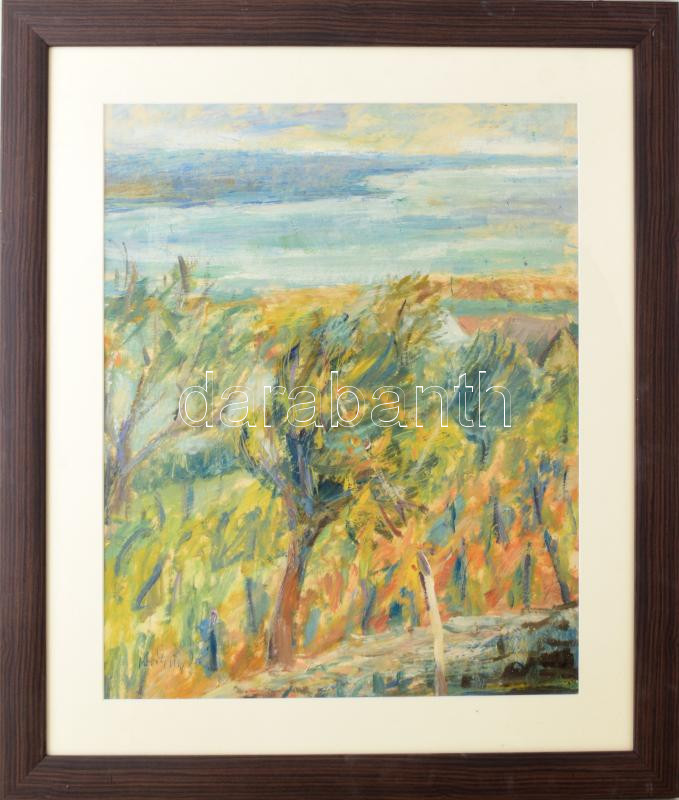 Leírás: Kováts Nagy Ira (1921-2008): Balaton környéki táj. Olaj, papír. Jelezve balra lent. Üvegezett fakeretben, 49×39,5 cm