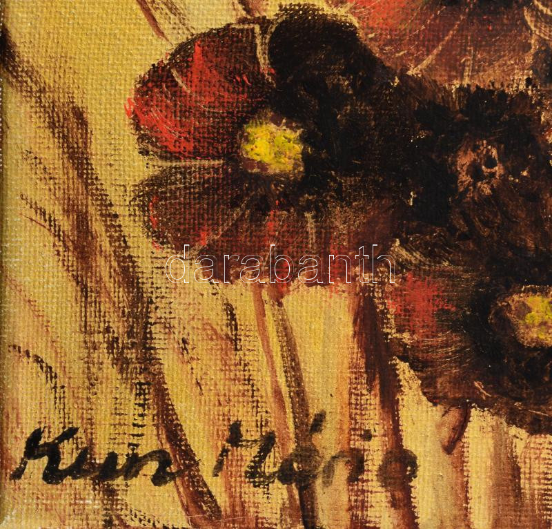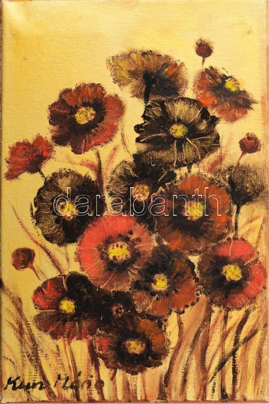 Leírás: Kun Mária (1944-): Mákvirág. Olaj, vászon, jelzett. 30x20 cm
