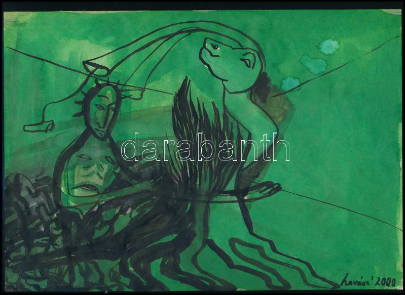 Leírás: Lovász Erzsébet (1954-): Szürrealista alakok, 2000. Akvarell, papír, jelzett, 21x29,5 cm
