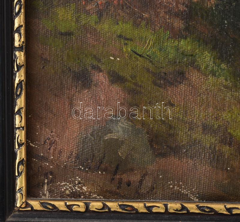 Leírás: Mendlik Oszkár (1871-1963): Hegyvidéki vízesés. Olaj, vászon, kartonon. Kissé sérült (korábban feltehetően feltekerve). Dekoratív fakeretben. 50×40 cm