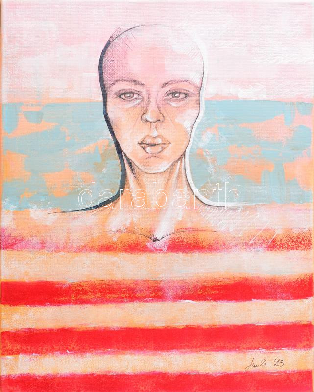 Leírás: Nagy Imola (1976-): Az Északi-tengernél. Akril, filc, ceruza, vászon, , jelzett 40x50 cm