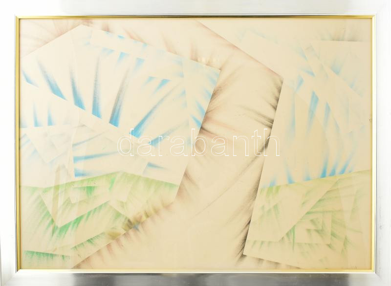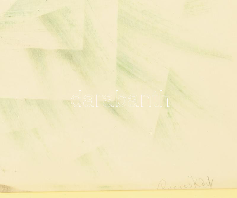 Ruzicskay György (1896-1993): Absztrakt kompozíció. Vegyes technika, papír, jelzett, üvegezett fakeretben, 50x70 cm / mixed technique on paper, signed, framed
