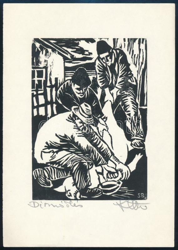 Leírás: Stettner Béla (1928-1984): Disznóölés. Linómetszet, papír, jelzett. 14x10 cm.