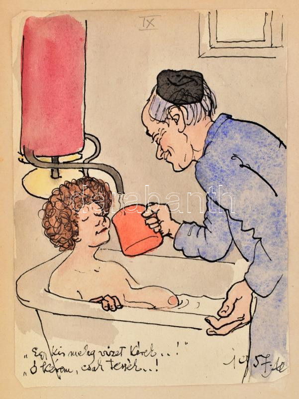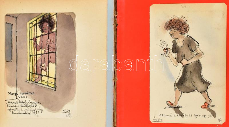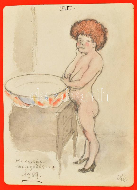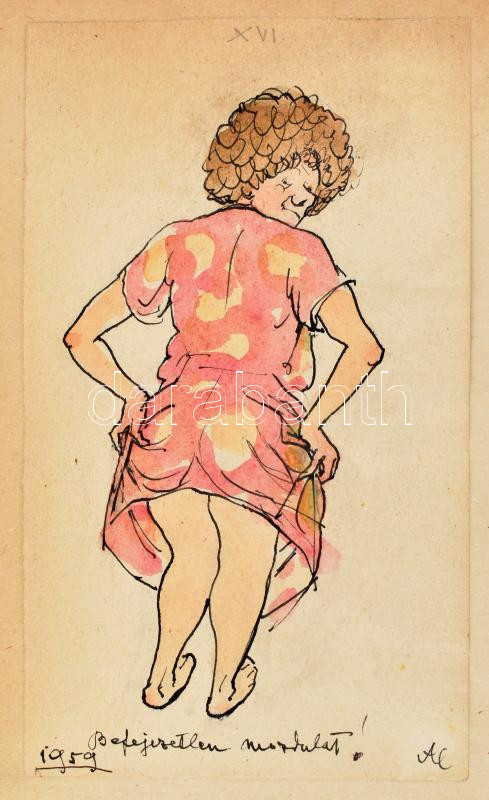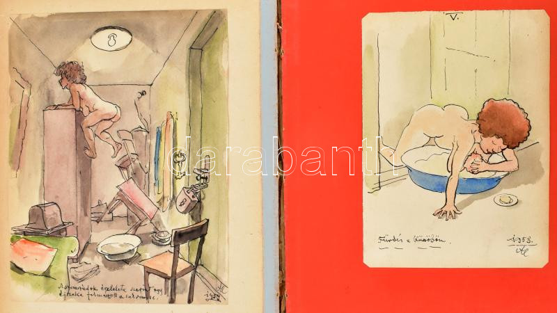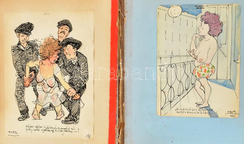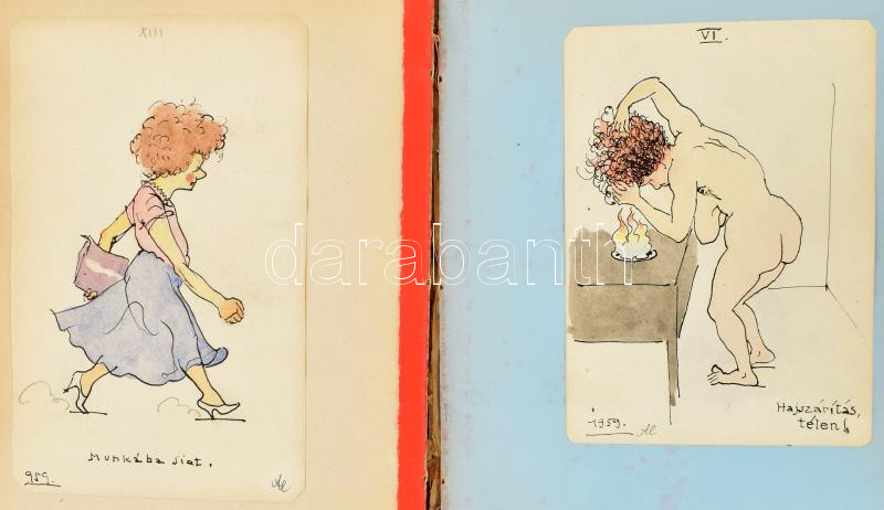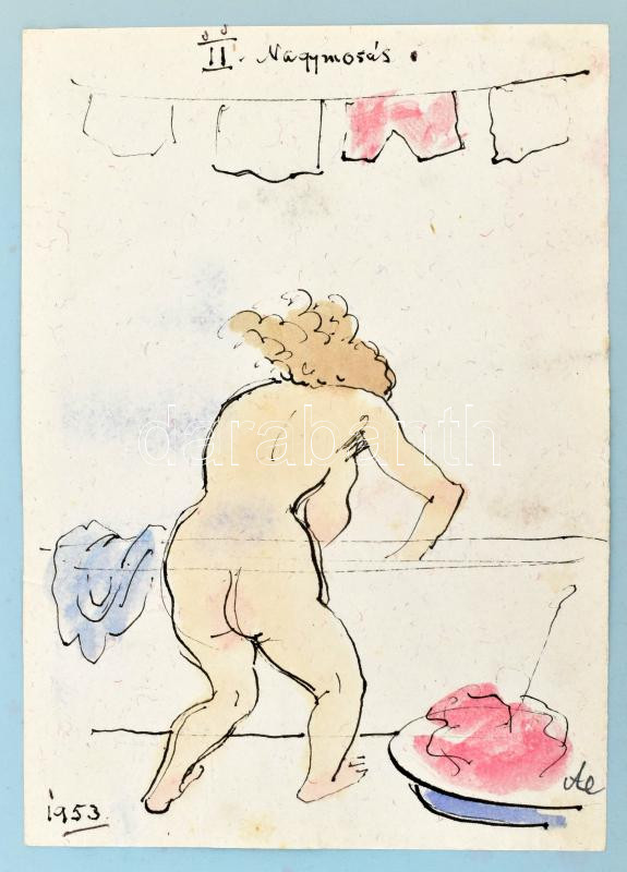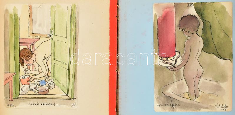 Székely Alex (1901-1968): Erotikus rajzsorozat, össz. 16 db mű, 1953-59. Akvarell, ceruza, tus, papír. Mindegyik jelzett, kartonra kasírozva, 20x14 cm és 24x17,5 cm közötti méretekben. Sérült mappában.