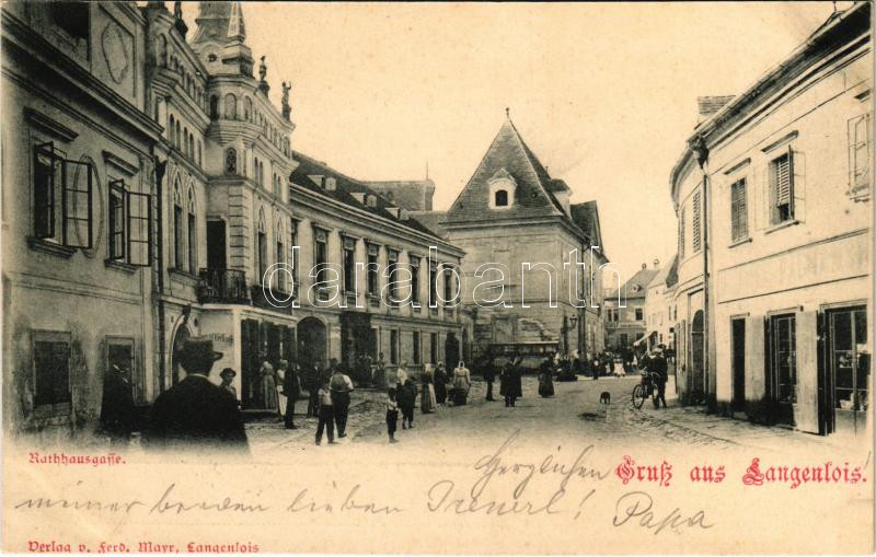 1899 (Vorläufer) Langenlois, Rathausgasse / street view (wet corners) https://www.darabanth.com/hu/457-Gyorsarveres/457.0/Kepeslapok/Ausztria~1000062/1899-Vorlaufer-Langenlois-Rathausgasse-street-view-wet-corners~II3059013