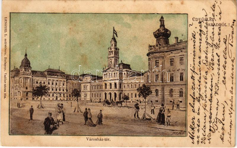 Leírás: 1899 (Vorläufer) Arad, Városház tér, Városháza. Lengyel L. műintézete / town hall, square (fl)