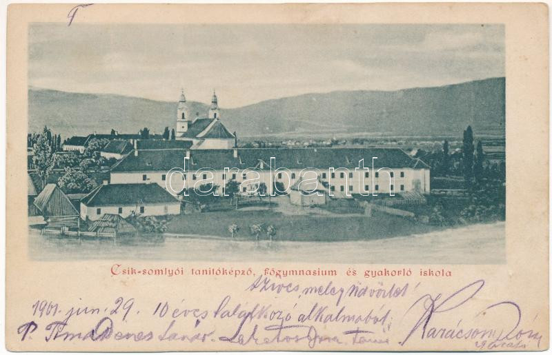 1901 Csíksomlyó, Sumuleu Ciuc; Tanítóképző, főgimnázium és gyakorló iskola. Karácsony József igazgató, Lakatos és Timár tanárok aláírása / teachers training institute and school. School principal's and two teachers' signature (EK)